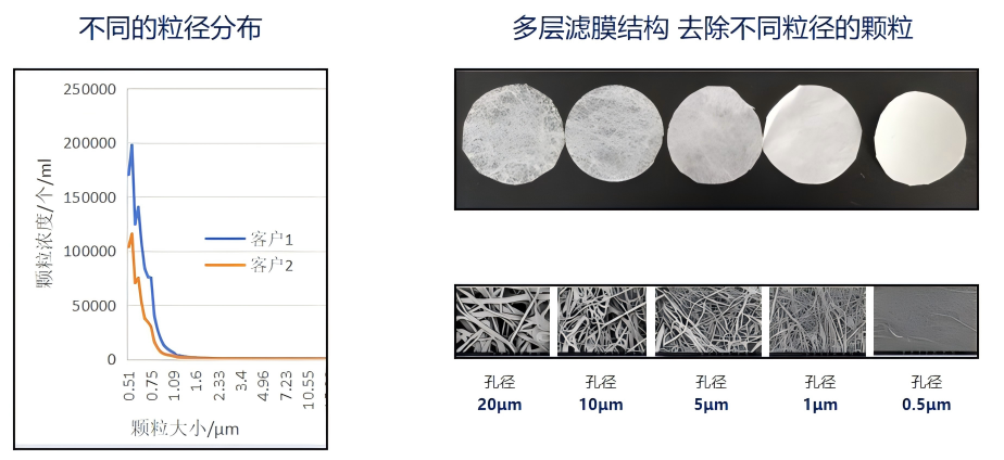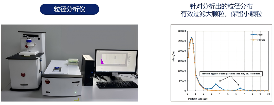其次,就是基于孔徑分析的定制開發能力。前文提到過,各家MLCC廠商所用漿料的粒徑分布不同,而我們邁博瑞會使用粒徑分析儀器對漿料進行粒徑分析,從而針對性開發濾芯結構,可以有效去除有害的大顆粒,保留有用的小顆粒。