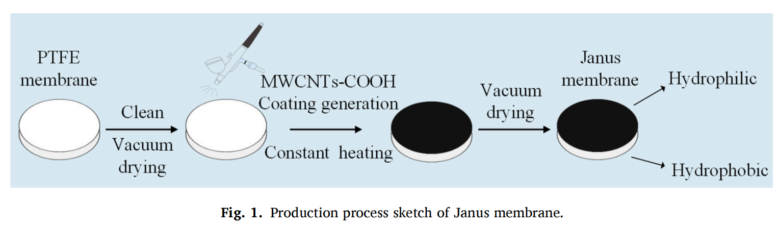 研究團隊創新性設計親水 - 疏水復合 Janus 膜,以邁博瑞三種孔徑(0.22/0.45/1.0 μm)PTFE膜為疏水層基底,結合碳納米管親水改性,構建出不對稱潤濕性的 “智能通道”: