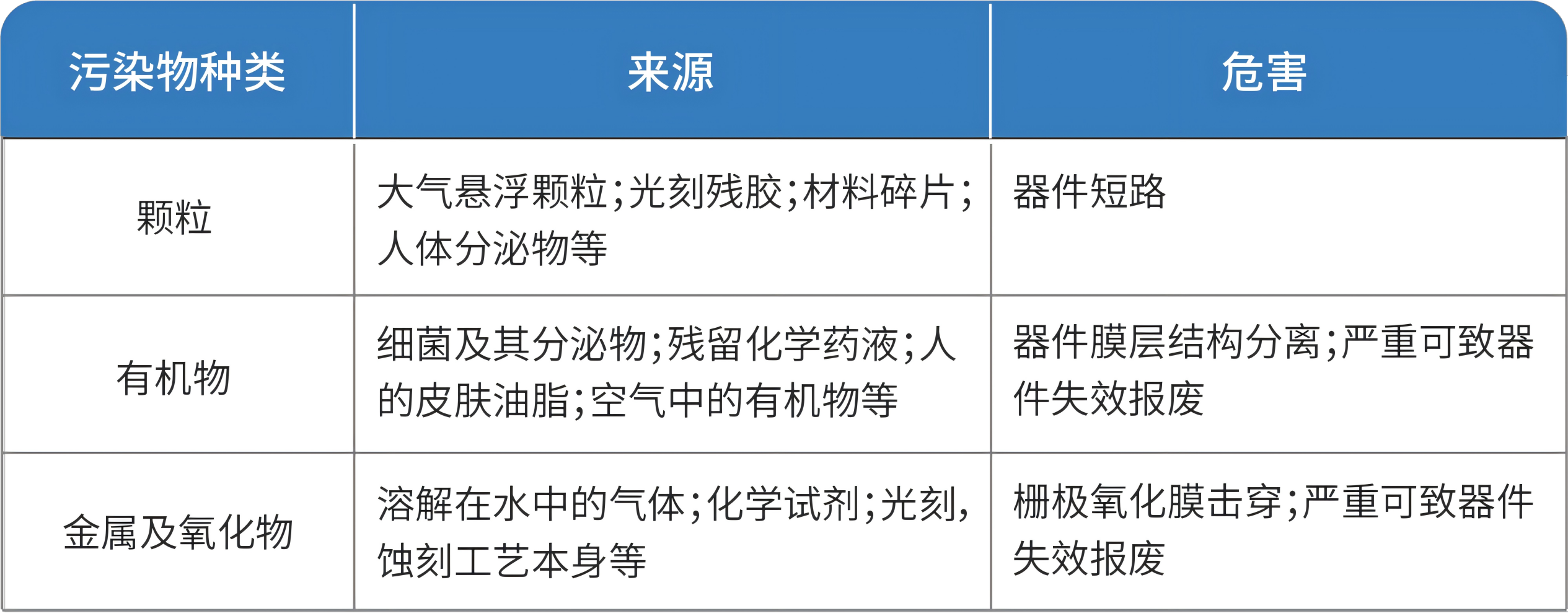 硅片表面的污染物主要分為三大類: