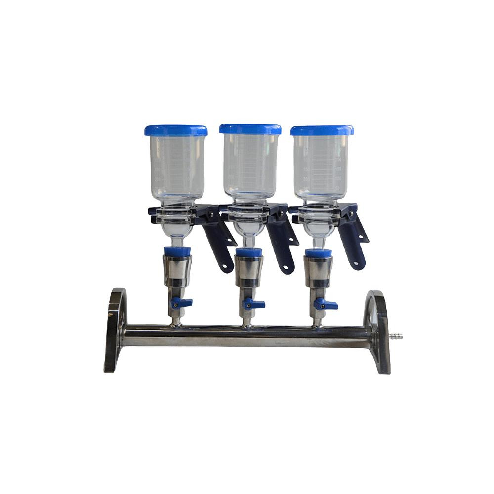 MS 多聯(lián)過濾器是專門為同時間測定多個樣品設(shè)計的。多聯(lián)過濾系統(tǒng)可同時進(jìn)行多(單、三、六)個樣品過濾,只需一個真空氣源就可以完成全部操作,節(jié)省大量的時間,方便快捷。多聯(lián)支架優(yōu)先已做拋光處理的316L材質(zhì)不銹鋼,能耐大多數(shù)腐蝕性液體,與玻璃或不銹鋼換膜過濾器配套使用。提高工作效率和試驗條件的一致性,從而達(dá)到實驗結(jié)果的準(zhǔn)確度。并且該過濾系統(tǒng)可以在高溫操作(180℃),尤其適用于熱過濾條件的試驗。